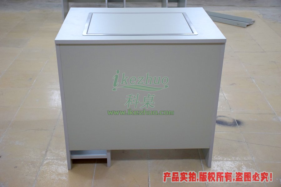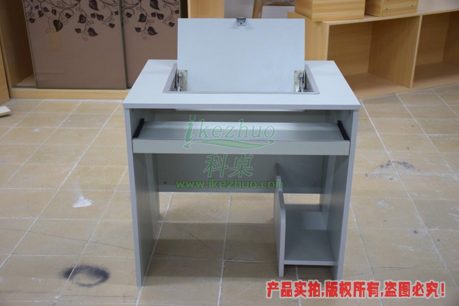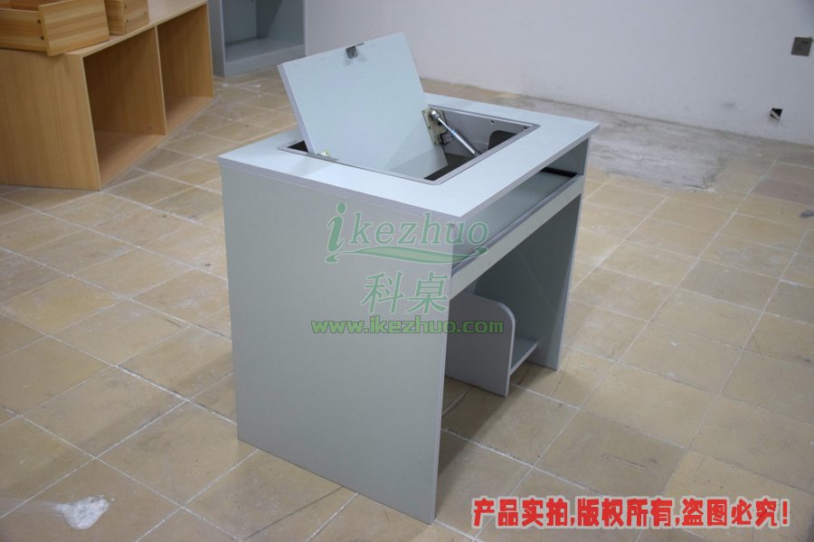 当需要使用显示器时轻按前端桌面板隐藏在桌子内部的显示器会自动从桌子下面升到桌面翻转到合适角度。当不使用显示器时,可手动按下显示器翻盖面板至桌面平整,显示器自动锁住隐藏在桌子内与桌面保持平整一致。起到防尘,防盗,保持桌面平整美观。使用方便,手动控制,翻转自如。