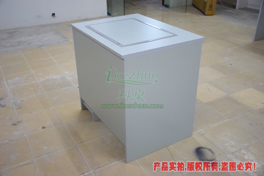 4、当不使用显示器时,可手动按下显示器翻盖面板至桌面平整,显示器自动锁住隐藏在桌子内部,此时整个桌面成一个平面状态
