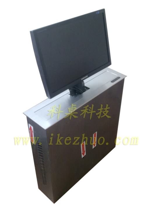 从会议桌下面升到桌面、当不使用显示器时,升降机自动下降,显示器隐藏在会议桌内,起到防尘,防盗,保持桌面平整美观。